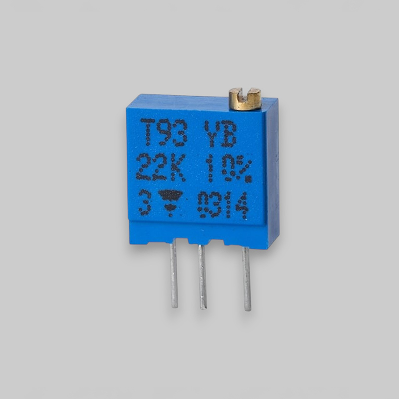 Il T93 è un trimmer di piccole dimensioni. Sono disponibili cinque versioni che differiscono per la posizione della vite di controllo in relazione al piano della scheda PC e tramite spaziatura dei terminali. L'eccellente stabilità operativa è garantita dall'uso di elemento cermet.